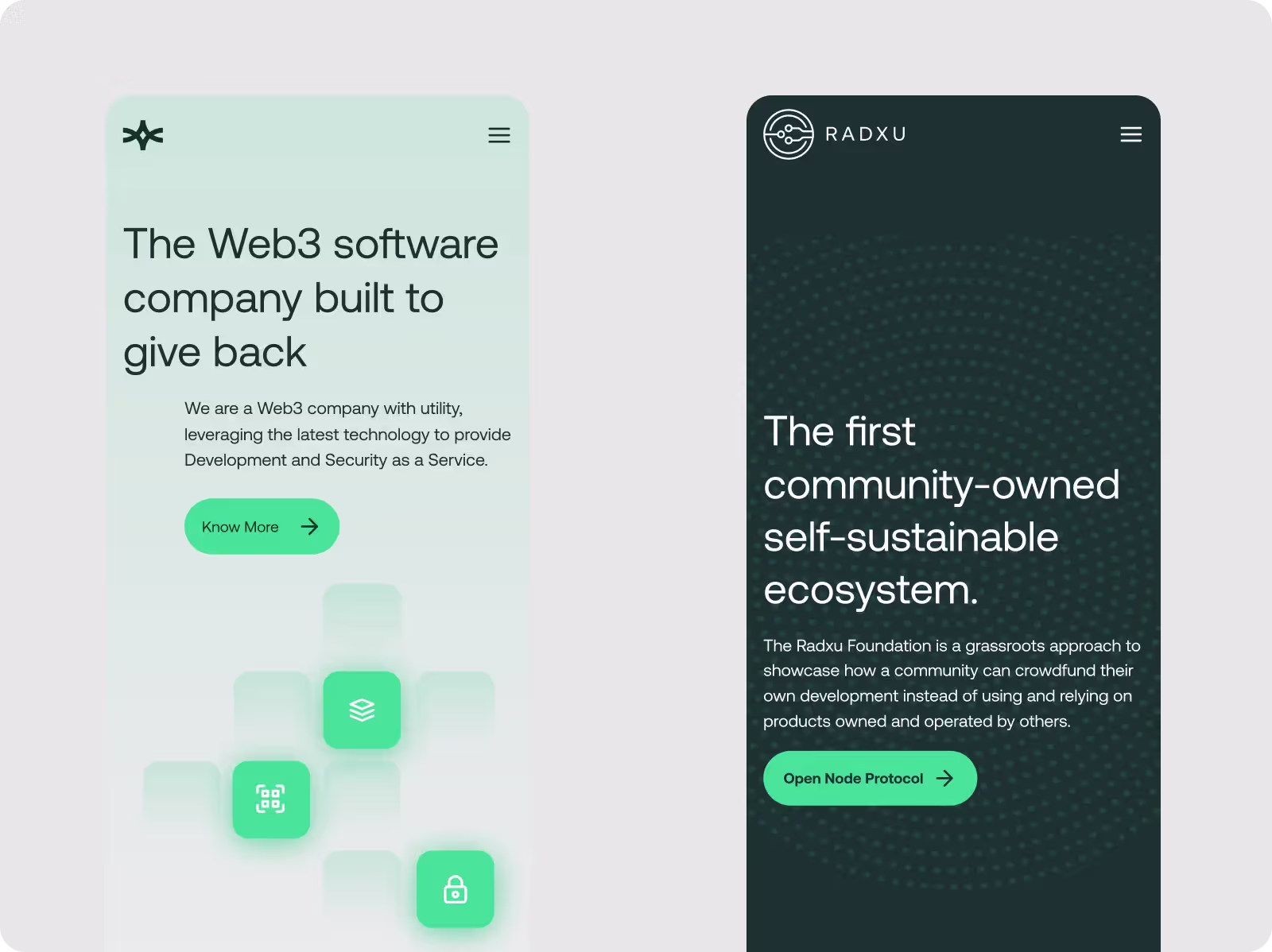Radxu Foundation shows how communities can crowdfund development. New branding by Audicity blends circuit board elements with a scalable logo and design.